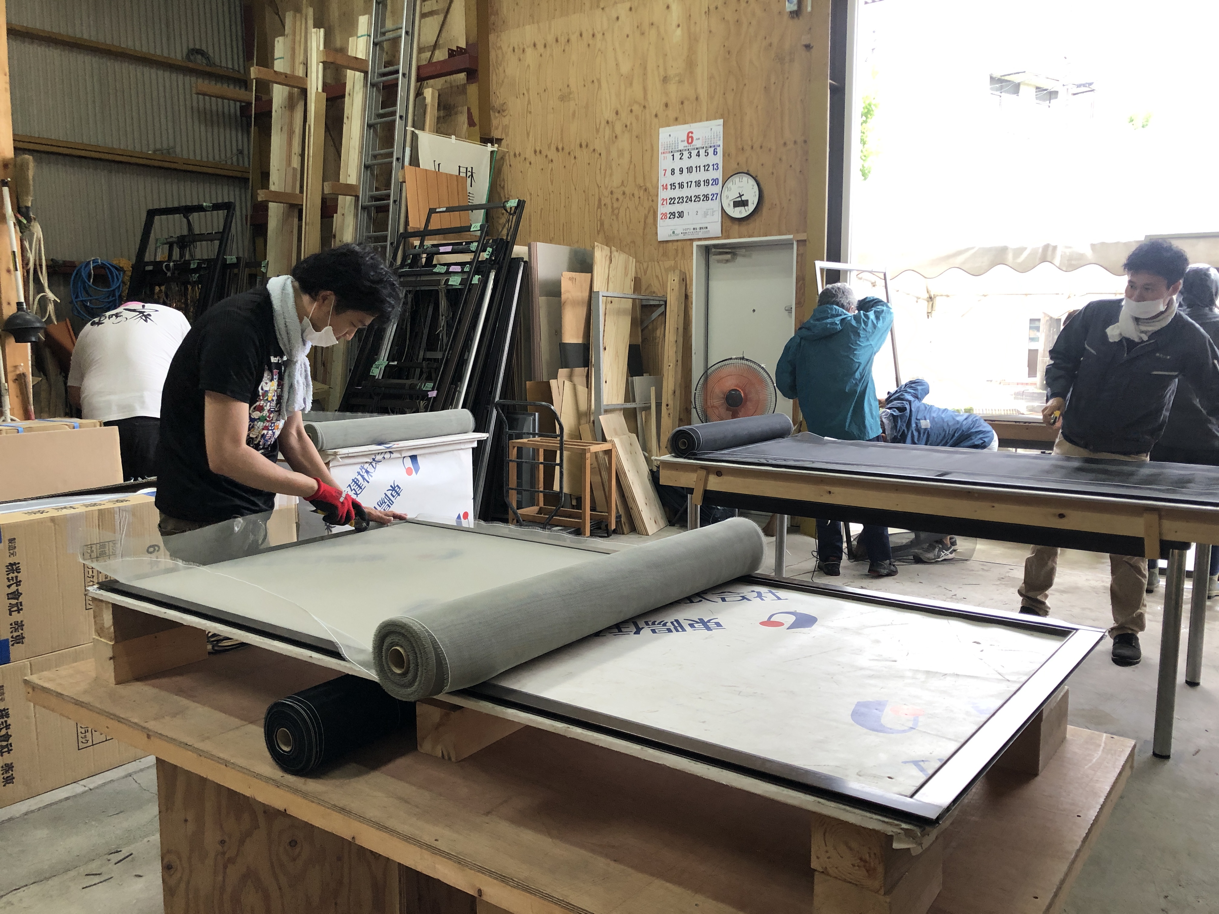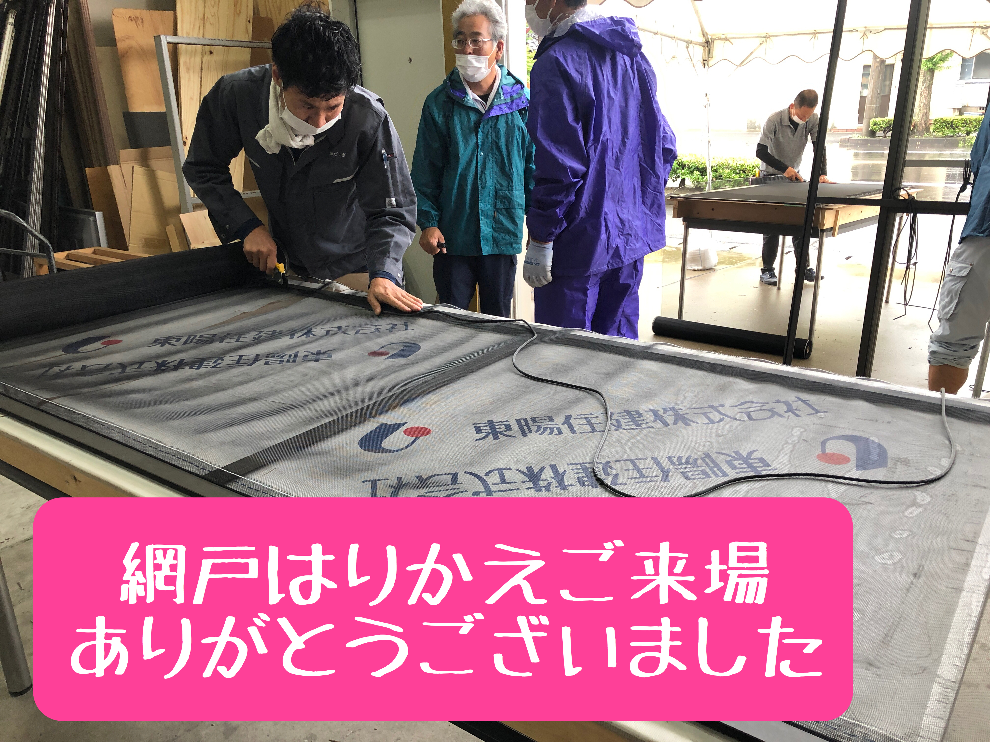 スタッフの皆様もたくさんの網戸を張り替えました!