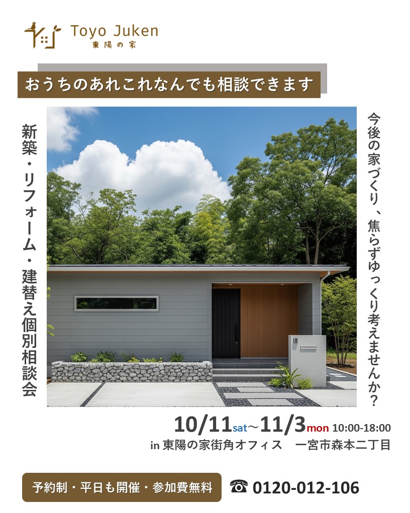 年末が近づくにつれて毎年混みあってきます。少し早めの今、ゆっくりおうちのご相談をお聞かせください。